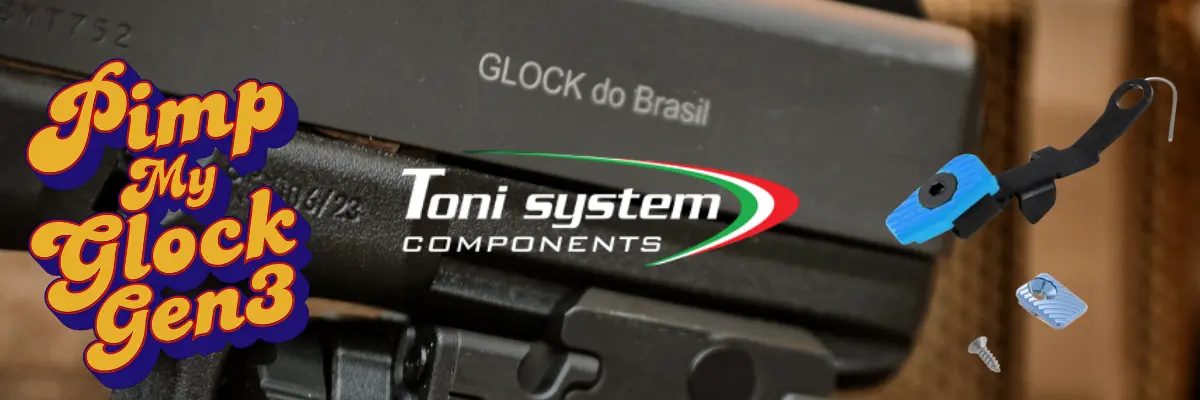 Zestaw do Glock Gen3 19/23: Stage 1 – zatrzask zamka, magazynka, przerywacz 2kg oraz lejek/MagWell