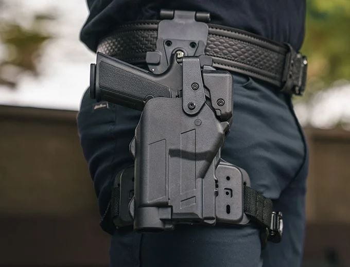 SZYBKA. BEZPIECZNA. WYTRZYMAŁA.Kabura Rapid Force Duty chroni Twoją broń, dzięki czemu możesz chronić i służyć. Zaprojektowany z myślą o potrzebach aktywnych członków organów ścigania i służb wojskowych, Rapid Force oferuje bezpieczne zabezpieczenie poziomu 3, szybkie i intuicyjne dobycie borni oraz wyjątkową trwałość.