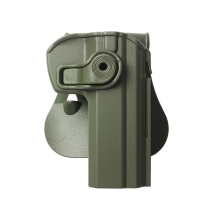 Kabura wykonana z wytrzymałego polimeru, charakteryzującego się dużą trwałością nawet w najtrudniejszych warunkach. Kabura marki IMI Defense doskonale przydaje się do przenoszenia broni na biodrze. Kabura z płetwą oferuje możliwość regulacji o 360º. Płetwę można przymocować do paska o szerokości 45 mm.