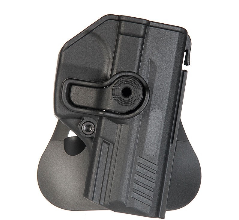Model wykonano z polimeru przez co konstrukcja jest lekka i wytrzymała. Kaburę można zamocować przy pasie dzięki specjalnej płetwie, zapobiega ona również wypadaniu broni w trakcie użytkowania. Kabura posiada możliwość regulacji kata ułożenia względem płetwy. Regulację kończymy przy użyciu dołączonego do zestawu klucza imbusowego. Użyty materiał i specjalna faktura zapobiegają porysowaniu broni kiedy ta znajduje się w kaburze.