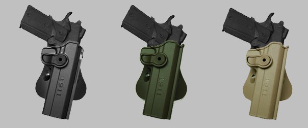 Kabura wykonana z polimeru, pasuje do większości odmian Colta 1911, wyposażonych oraz bez szyny 5″.