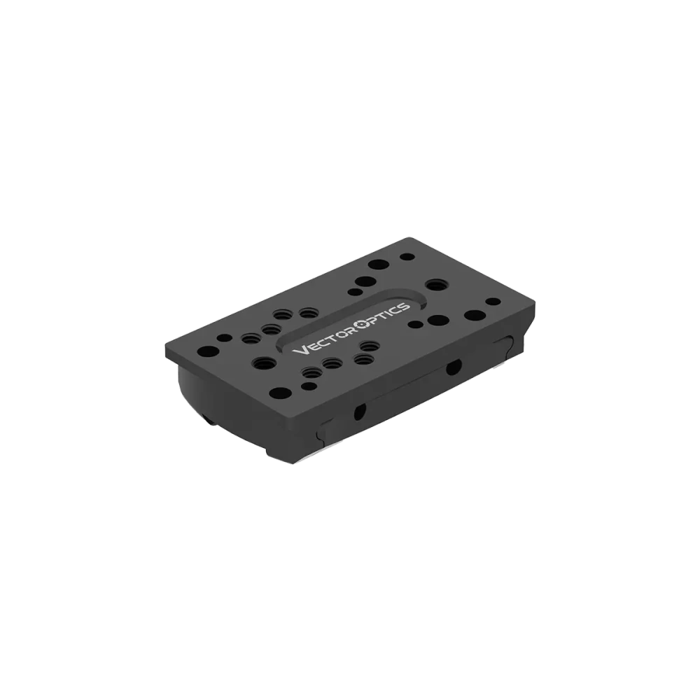 Uniwersalna płytka do montażu kolimatorów do pistoletu standardu MGT/MOJ/TEK/GIN na szynę Dovetail 11 mm od firmy Vector Optics. Szereg oznaczonych otworów wraz z instrukcją pozwala w łatwy sposób zidentyfikować punkt montażowy dla danego kolimatora. Został wykonany z frezowanego stopu aluminium 7075-T6, którego powierzchnię anodyzowano.
