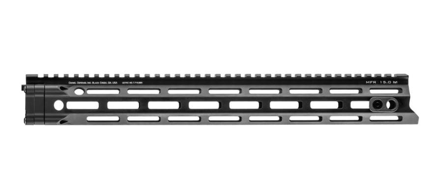 System szyn modułowych MFR™ firmy Daniel Defense wykorzystuje system montażowy M-LOK®, zapewniając znaczną redukcję wagi oraz doskonałe chłodzenie, ergonomię i modułowość, przy jednoczesnym zachowaniu wytrzymałości i trwałości oczekiwanej od produktów Daniel Defense. Punkty montażowe M-LOK są rozmieszczone w 7 pozycjach na szynie, która posiada nieprzerwany profil szyny Picatinny 1913 na górze.