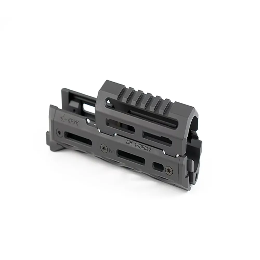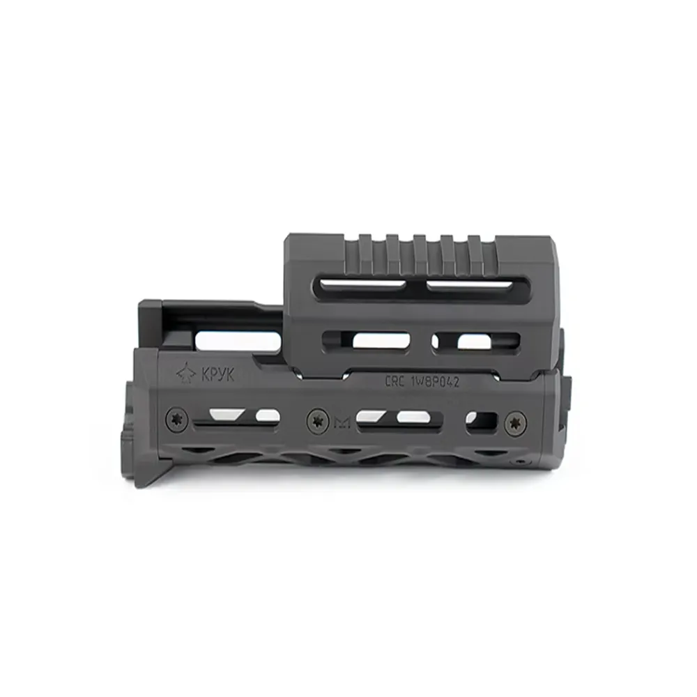 Dwuczęściowe łoże wykonane z frezowanego aluminium 6082, dedykowane do karabinków WBP Jack, Midi Jack oraz innych modeli opartych na konstrukcji AK‑74, AKM i AKS‑74 od firmy Kruk. Komplet zawiera dolną część łoża oraz krótką nakładkę rury gazowej, które razem zastępują oryginalne elementy drewniane. Interfejs M‑LOK rozmieszczony na trzech płaszczyznach umożliwia montaż dodatkowych akcesoriów. Szyna Picatinny pozwala na instalację optyki, na przykład kolimatora.