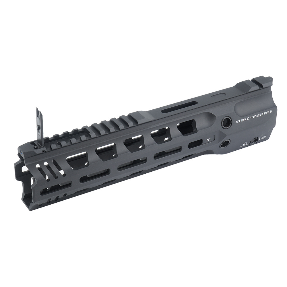 Łoże aluminiowe GRIDLOK Lightspeed o długości 11”, od Strike Industries, przeznaczone do karabinów systemu HK416 i M27 IAR. Wykonane w całości z aluminium 6061-T6, obrabianego metodą CNC, dzięki czemu jest lekkie, wytrzymałe i precyzyjnie wykonane. Łoże posiada otwory montażowe systemu M-LOK, górną szynę w standardzie Picatinny, gniazda QD i składaną muszkę. Montaż na broni i demontaż są bardzo szybkie, za pomocą dźwigni u spodu. Łoże posiada średnicę wewnętrzną 40,5 mm, dzięki czemu dostosowane jest do zakładania wraz z urządzeniami wylotowymi i kompensatorami, takimi jak Oppressor.