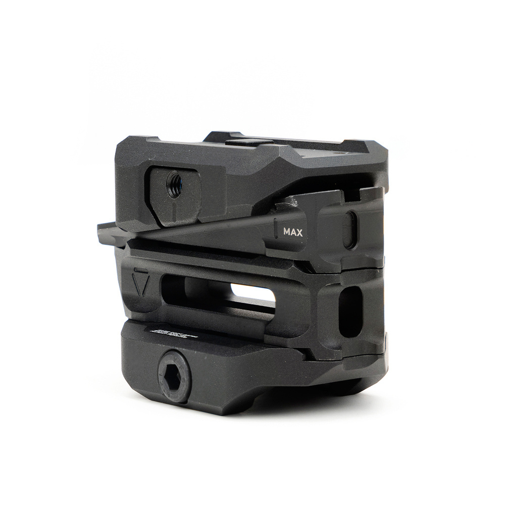 Montaż pod celowniki kolimatorowe, o zmiennej regulacji wysokości. Przeznaczony do montażu na szynie Picatinny. Wyposażona w bardzo popularny footprint Aimpoint® Micro Standard. Zakres regulacji wynosi od 1/3 co-witness do 4,9 cm. Dzięki wcięciom na szynie regulacja jest precyzyjna i stopniowa. Wykonana z aluminium konstrukcja została specjalnie dopracowana, aby zachowywała zero również po ponownej instalacji.