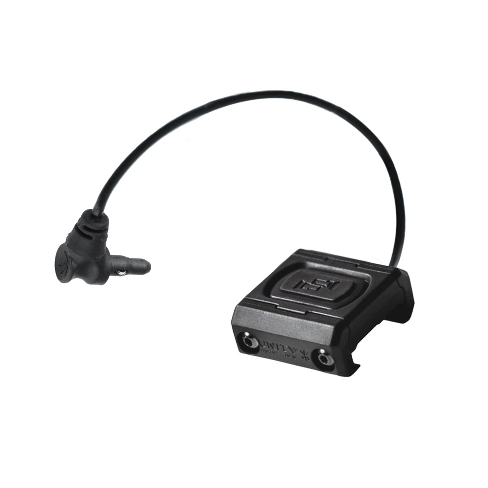 Włącznik żelowy ModButton Lite umożliwiający chwilowe uruchomienie kompatybilnego urządzenia o określonej wtyczce. Firma Unity Tactical stworzyła unikatowy przełącznik wśród całej kategorii tychże, ze względu na kompaktowe wymiary i obudowanie samego przycisku. Korpus ze zintegrowanym montażem na szynie Picatinny M1913 został wykonany z tłoczonego polimeru jako jeden element przez posiada podwyższoną wytrzymałość.