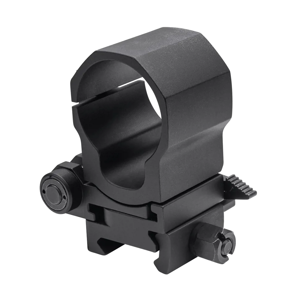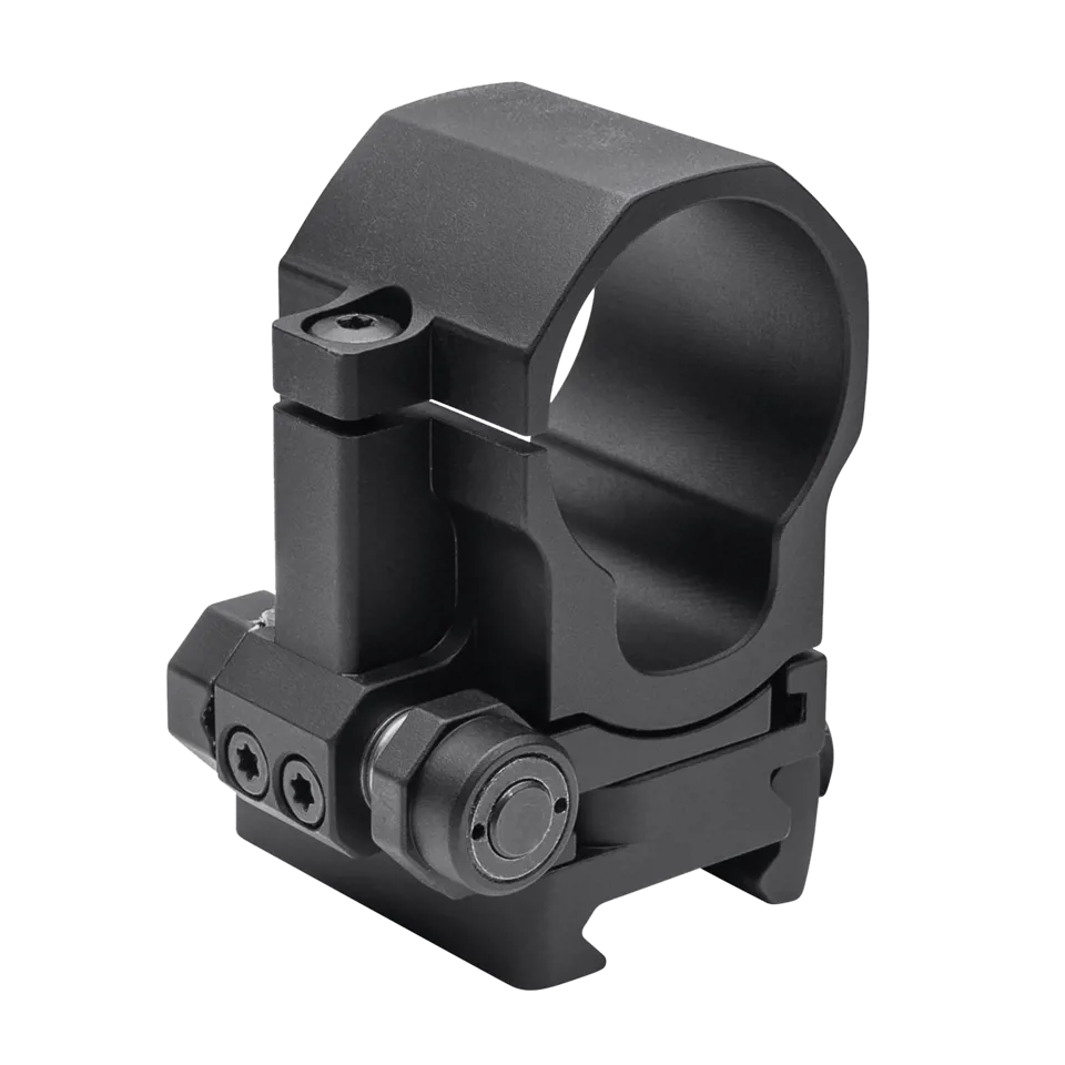 Montaż FlipMount wysoki współpracuje z powiększalnikami Aimpoint oraz inną optyką na tubusie 30 mm. Solidna konstrukcja zapewnia sztywność i odporność na odrzut przy intensywnym użytkowaniu broni. System szybkiego wypinania pozwala też na całkowite zdjęcie powiększalnika z karabinka, gdy nie jest potrzebny.