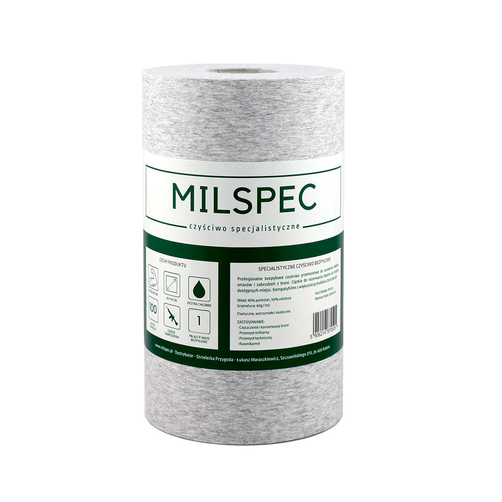 Czyściwo specjalistyczne bezpyłowe stworzone z myślą o czyszczeniu broni z najgorszych zabrudzeń. Bez trudu poradzi sobie ze smarem, zapieczeniami oraz innymi trudnymi do usunięcia zabrudzeniami przemysłowymi. Z powodzeniem można go używać do czyszczenia wiatrówek długich. Odporne na rozrywanie, dzięki czemu można bez obaw ich używać w trudno dostępnych miejscach.
