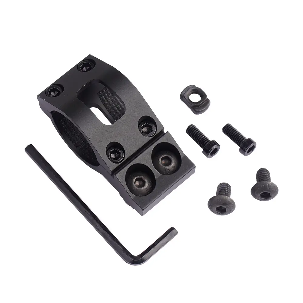Uchwyt kompatybilny z systemem M-LOK umożliwiający zamontowanie na karabinie szerokiej gamy latarek ręcznych o średnicy uchwytu wynoszącej od 20 do 23 mm, takich, jak latarki taktyczne Mactronic Black Eye 1550 lm THH0047 i Black Eye 1000 lm THH0049.