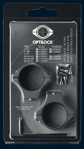Montaże Tikka Optilock są dostępne dla lunet o średnicy tubusu 26 i 30 mm, oraz w trzech opcjach wysokości bazy. Są oksydowane, albo wykonane ze stali nierdzewnej. Pasują do każdej lunety.