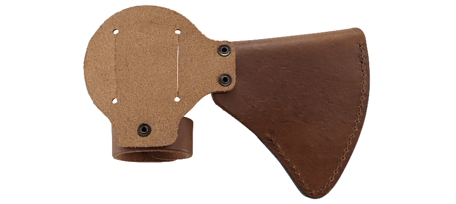 Pokrowiec wykonany z prawdziwej skory chroniący ostrze toporka i oferujący możliwość przypięcia do paska. Naturalna skóra z której jest wykonany pokrowiec nie koroduje metalu.