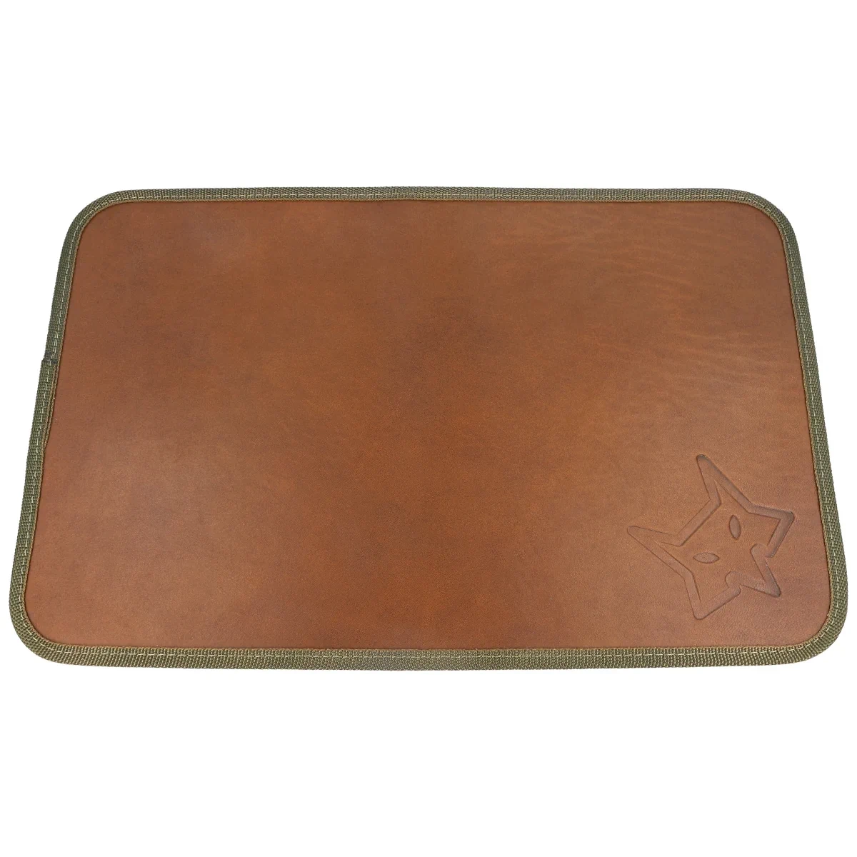 Fox Green Leather Mat, skórzana mata na stół lub biurko do ekspozycji noży, idealne akcesorium do stylowego zaprezentowania kolekcji. Wykonana z wysokiej jakości skóry mata zapewnia elegancką i trwałą powierzchnię do eksponowania ulubionych noży. Dodaje prestiżu i jakości, odzwierciedlając kunszt i doskonałość marki. Idealna do użytku na stołach, biurkach lub ladach wystawowych, poprawia prezentację noży i dodaje klasy otoczeniu.
