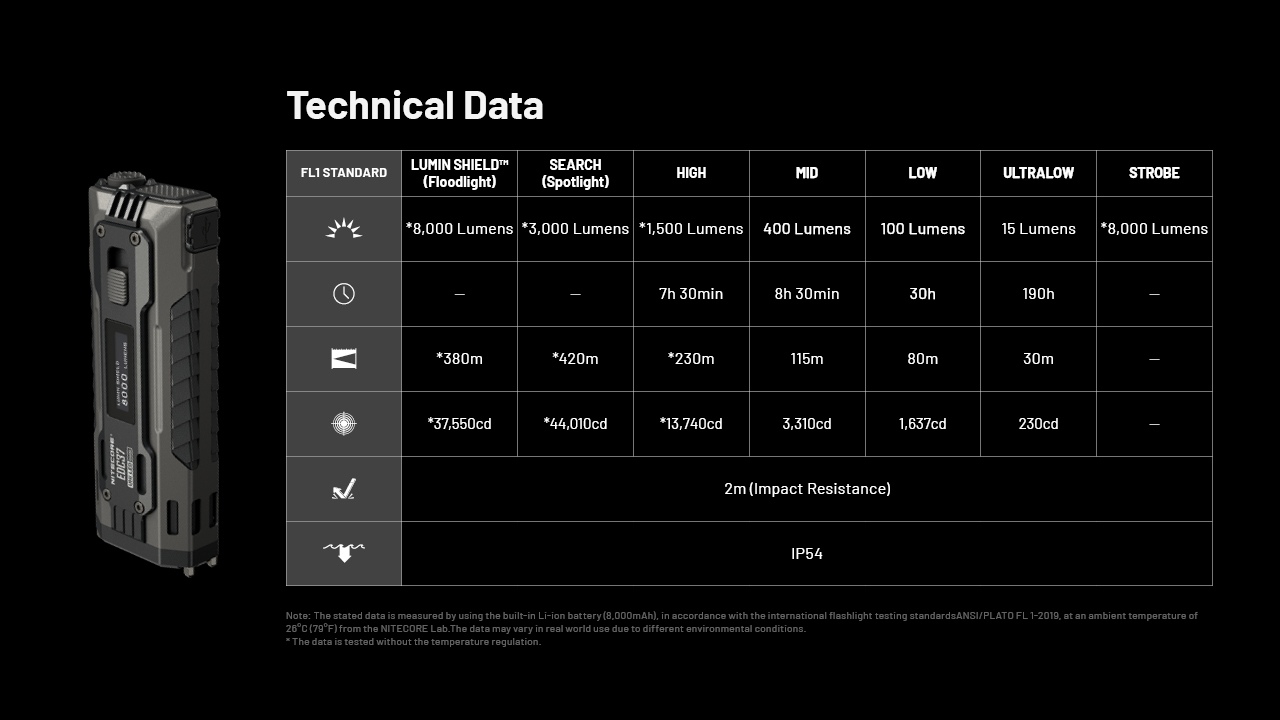 Pomimo niewielkich rozmiarów, EDC37 wyposażona jest w dwie ultranowoczesne diody LED NiteLab UHi 20 MAX, zdolne do generowania do 8000 lumenów.