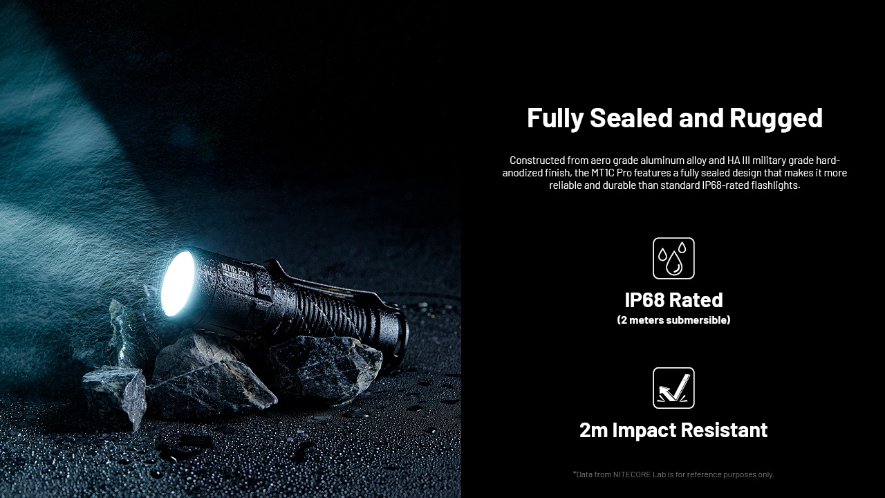 MT1C Pro to kompaktowych rozmiarów latarka, o imponującej mocy i funkcjonalności. Dzięki wykorzystaniu do produkcji wysokiej jakości stopu aluminium lotniczego, jest wytrzymała i lekka. Jeden dwustopniowy włącznik umożliwia łatwą i szybką regulację dwóch poziomów jasności, dzięki czemu sterowanie latarką jest bardzo intuicyjne. Wbudowany port ładowania USB-C pozwala na bezproblemowe uzupełnienie zapasu energii.