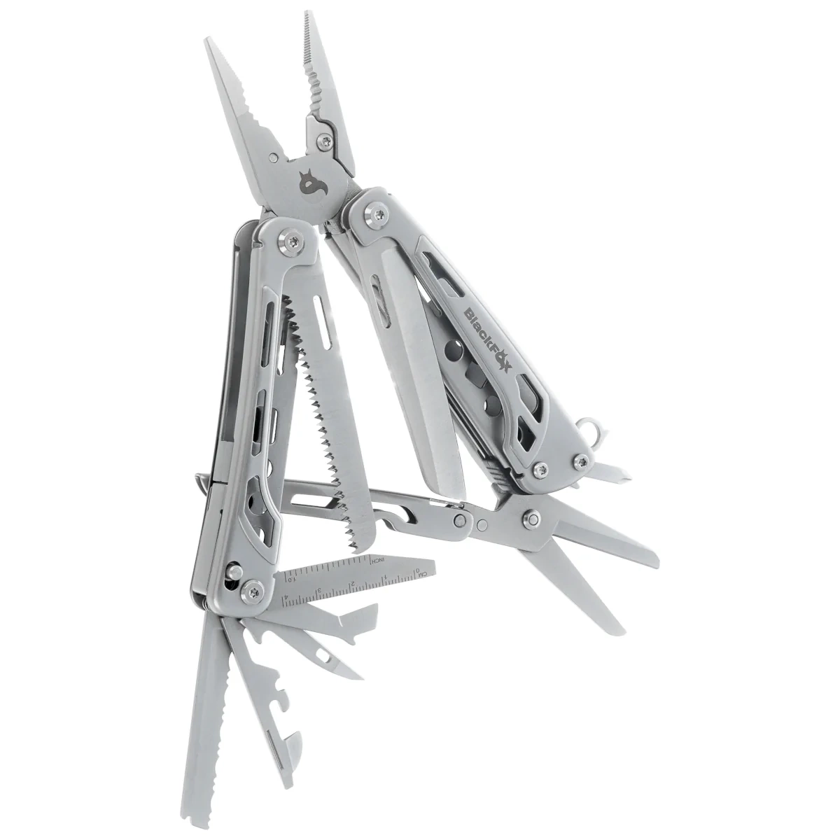 Black Fox Fortitude to multitool EDC zaprojektowany z myślą o użytkownikach potrzebujących kompaktowego, ale wszechstronnego narzędzia. Wyprodukowany przez renomowaną włoską markę, model ten stanowi niezastąpione wsparcie dla podróżników, majsterkowiczów i pasjonatów outdooru. Stal 440 Stainless Steel zapewnia odporność na korozję i ścieranie, a satin finish podkreśla techniczny charakter narzędzia. Multitool oferuje aż 18 funkcji, w tym: pełnowymiarowe kombinerki, przecinak do drutu, ostrza (gładkie i ząbkowane), piłę do drewna, nożyczki, skalpel techniczny, pilnik, szydło, zestaw śrubokrętów, otwieracze oraz krzesiwo z iskrownikiem i miarkę. Tak szeroki zakres wyposażenia sprawia, że Fortitude zastępuje pełen zestaw podręcznych narzędzi w jednej, ergonomicznej konstrukcji. Dzięki lekkiej i wytrzymałej rękojeści oraz klipsowi typu deep carry, model BF-206 jest łatwy do przenoszenia – w kieszeni, kaburze lub plecaku. To niezawodne narzędzie codziennego użytku, które odnajdzie się zarówno w warunkach miejskich, jak i terenowych.