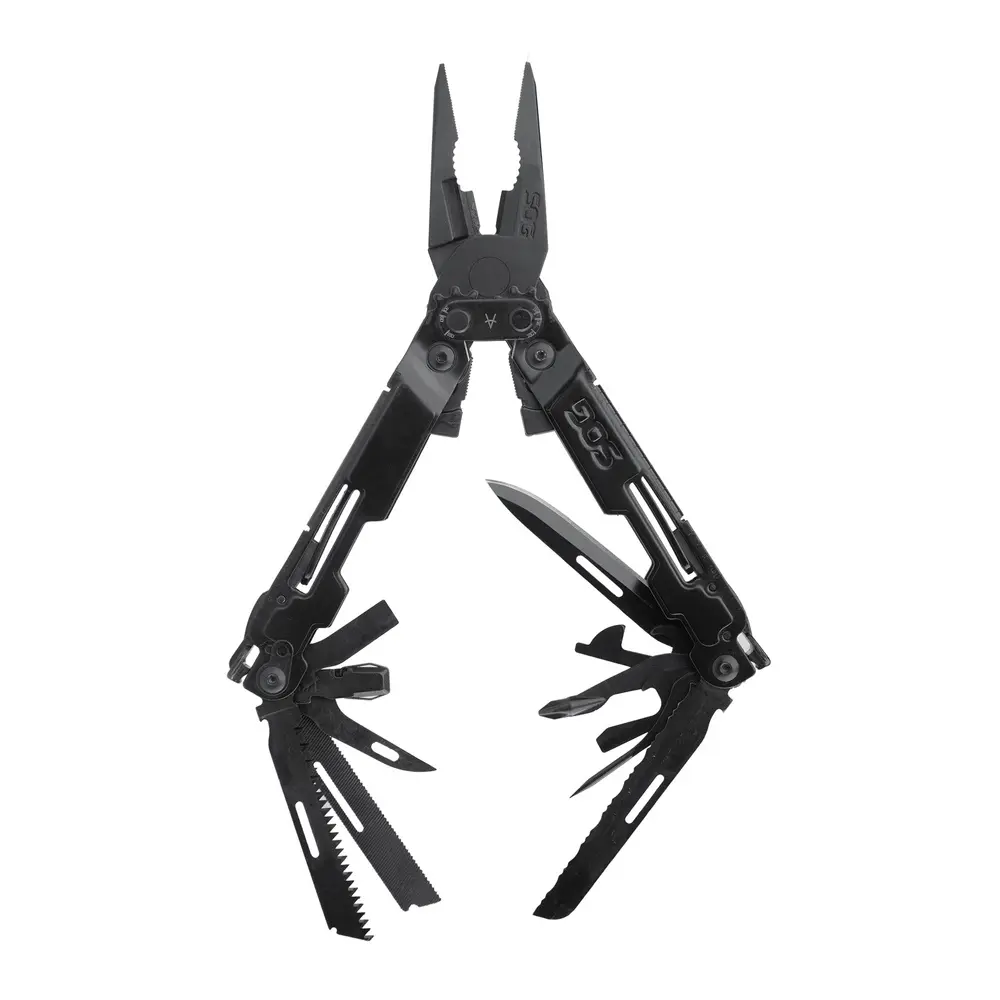 Multitool wyposażony został w aż 21 przydatnych narzędzi: złączka do przejściówek na bity 1/4″ i magnetyczne gniazdo na bity, przebijak, ostrze ząbkowane i gładkie, otwieracz do butelek i puszek, dłuto, trzystronny pilnik, mały i średni śrubokręt płaski, chwytak, zestaw 12 bitów, śrubokręt do biżuterii, kombinerki, śrubokręt Philips, kątomierz, linijka, przecinak do drutu (twardego), przecinak do drutu (miękkiego) oraz piła do drewna.