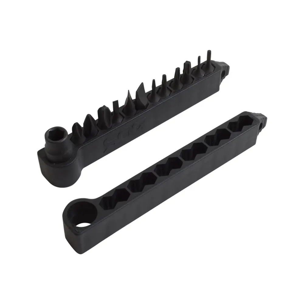 W zestawie znajduje się nylonowy pokrowiec, który umożliwia wygodne przenoszenie przy pasie taktycznym oraz 12 bitów z adapterem.