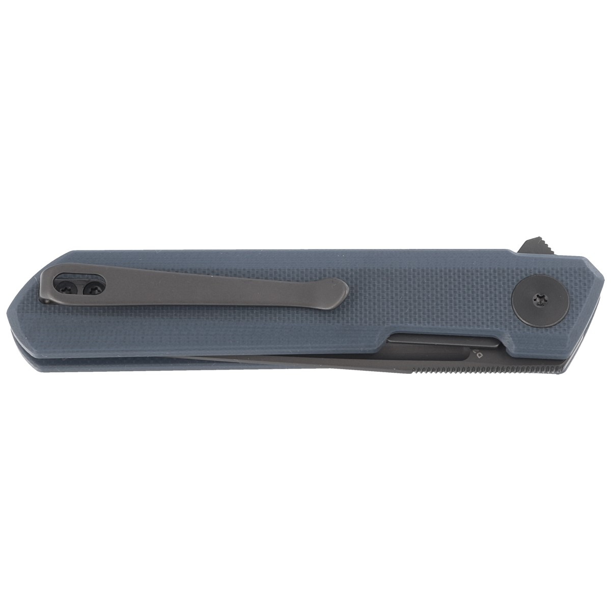 Rękojeść – wykonana z G10, kompozytowego materiału z włókna szklanego prasowanego pod ciśnieniem z syntetyczną żywicą. Agresywna tekstura okładzina zapewnia pewny chwyt, nawet mokrymi dłońmi. Fazowane krawędzie okładek eliminują ostre krawędzie dla wygody, a wykonany z przodu podcięcie na palec poprawia ergonomię. Otwarta konstrukcja tzw. open-backed mocowana stalowymi tulejami dystansowymi redukuję wagę oraz ułatwia czyszczenie. Dwupozycyjny, prawo/lewostronny klips deep carry pozwala przenosić dyskretnie nóż w kieszeni w pozycji tip-up (czubkiem ostrza ku górze).