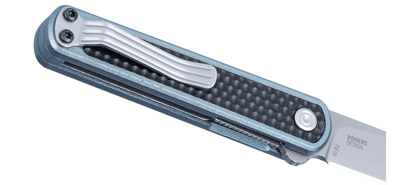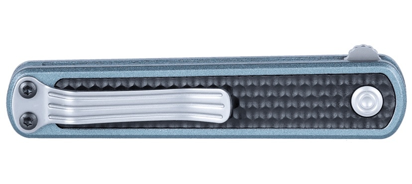 Stalowy klips umożliwia wpięcie noża za pas lub części garderoby.