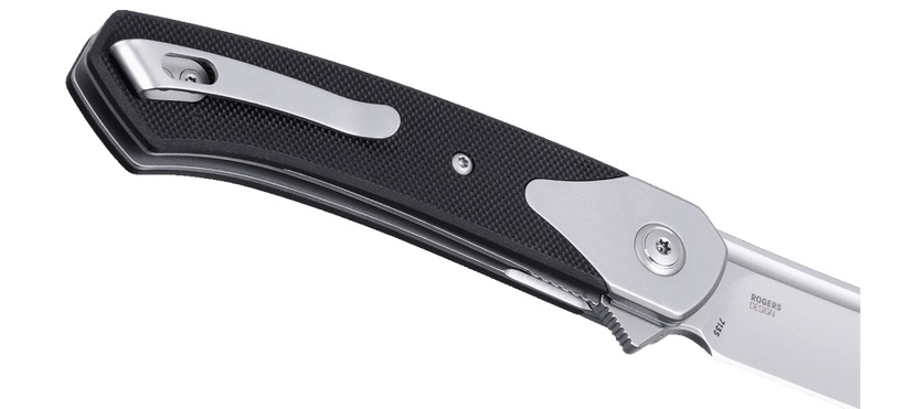 Kształt ostrza, wykonanego z wytrzymałej stali D2, doskonale współgra z krzywizną rękojeści, wykończonej okładzinami z laminatu G10.