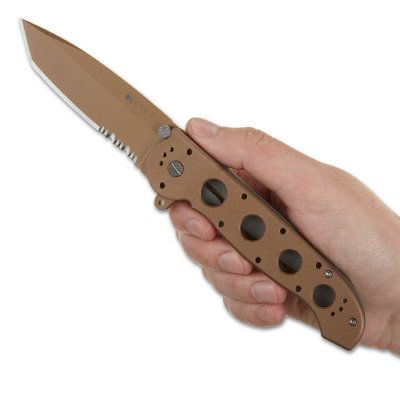 Ostrze, rama oraz pozostałe elementy zostały pokryte nieodbijającą światła taktyczną powłoką w kolorze piaskowym. Ostrza pokrywa warstwa azotku tytanu dla zwiększenia odporności na rdzę. Otwieranie i zamykanie noży jedną ręką przebiega gładko i sprawnie.
