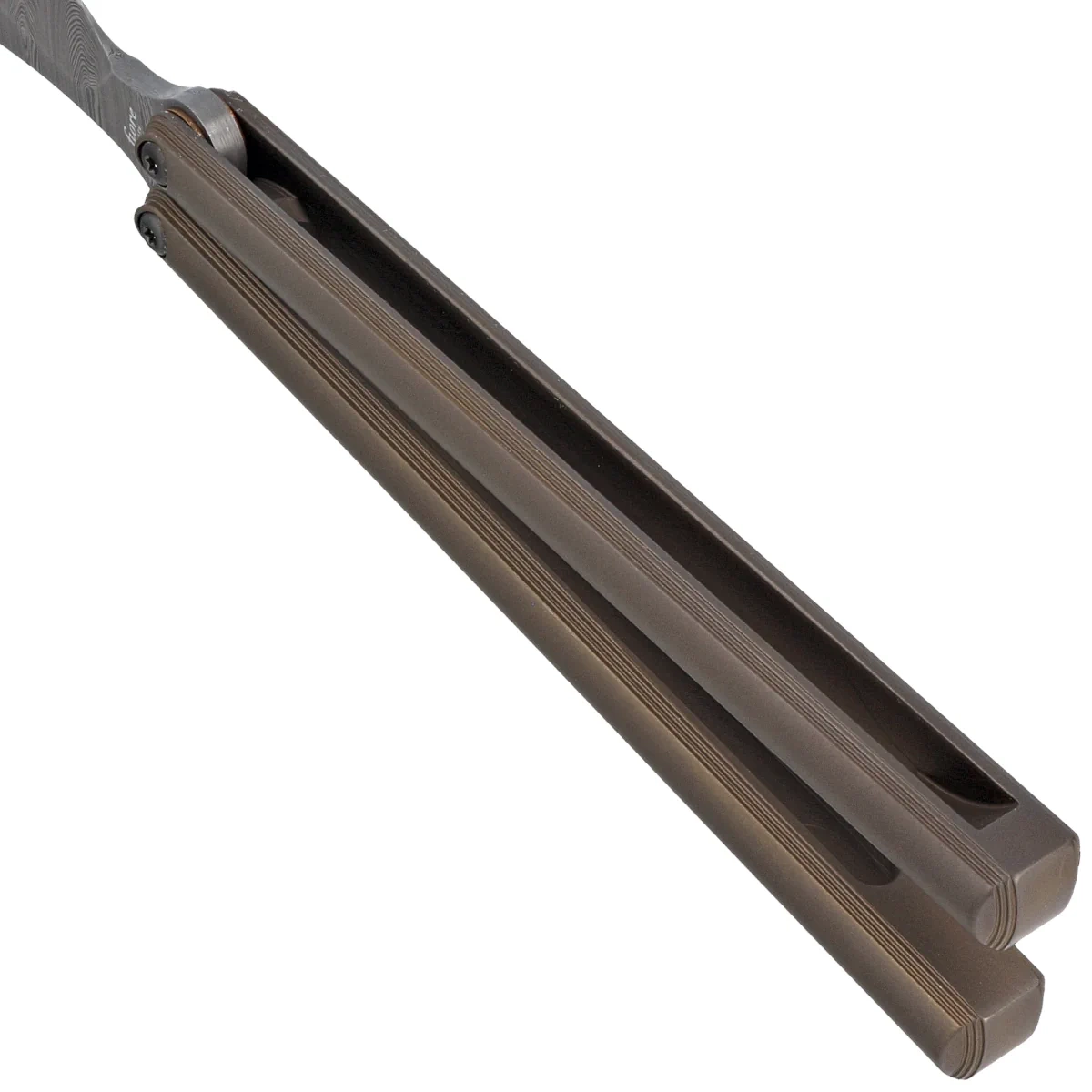 Rękojeść – okładziny z anodyzowanego na brązowo tytanu o lekko szorstkiej fakturze. Fazowane krawędzie okładek eliminują ostre krawędzie. Osie pivota osadzone niezwykle blisko siebie ze względu na brak kołków stop pina. Takie rozwiązanie pozwala na zdecydowanie płynniejszą pracę, co ułatwia wykonywanie skomplikowanych tricków. Z tego samego powodu projektant zrezygnował z belki zabezpieczającej ramiona w pozycji otwartej, wychodząc z założenia, że głównym celem jego balisonga ma być dostarczanie zabawy,