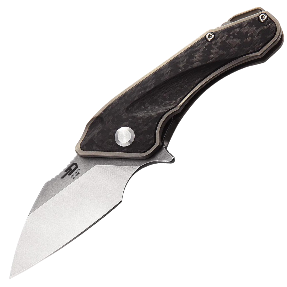 Rękojeść – okładziny z litego tytanu 6AL4V z inkrustacją Carbon Fiber po stronie prezentacyjnej. Fazowane krawędzie okładek eliminują ostre ranty dla wygody i poprawiają pewność uchwytu. Masywny tytanowy backspacer do którego przymocowano okładziny gwarantuje sztywność i wytrzymałość całej konstrukcji. Profilowane wgłębienia na okładzinach poprawiają ergonomię. Jednopozycyjny, prawostronny tytanowy klips umożliwia przenoszenie noża w pozycji tip-up, czubkiem ostrza ku górze.