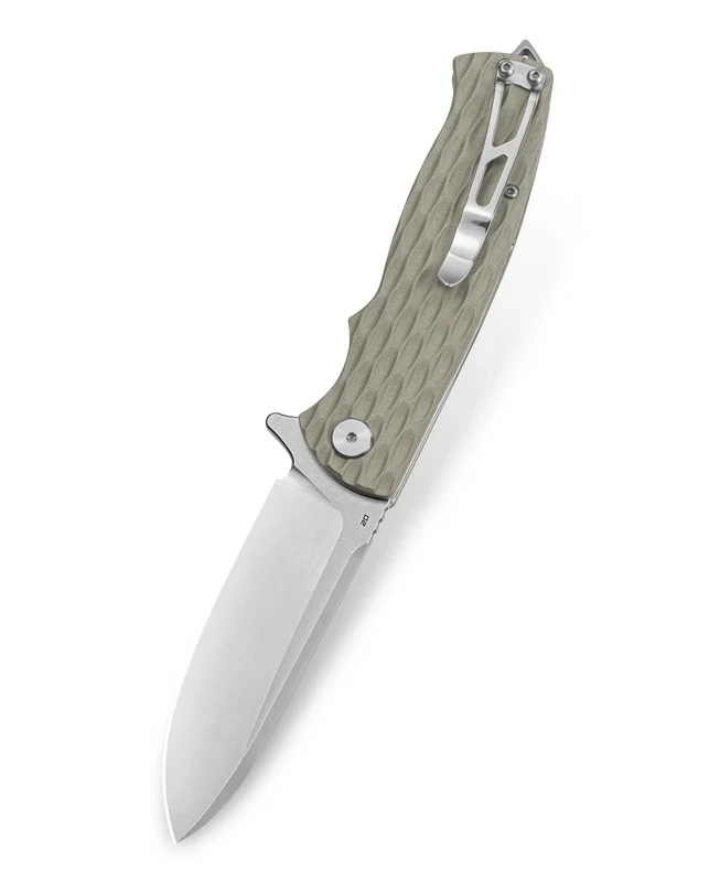 Grampus Beige G10, Stonewashed / Satin podręczny i wytrzymały folder E.D.C. o dobrze wyważonym rozmiarze. Wykonany z charakterystyczną dla firmy Bestech precyzją wyróżnia się solidną konstrukcją, ergonomiczną rękojeścią i płynnym mechanizmem otwierania, co czyni go doskonałym wyborem do codziennego użytku. Wyposażony w ceramiczne łożyska kulkowe i flipper, nóż zapewnia szybkie i łatwe rozkładanie ostrza jedną ręką. Głownia, wykonana z szybkotnącej stali narzędziowej D2, zapewnia doskonałe trzymanie krawędzi i trwałość. Przemyślana rękojeść z kompozytu G10 i rampa pod kciuk zapewniają pewny uchwyt podczas najbardziej wymagających zadań związanych z cięciem. Bestseller!