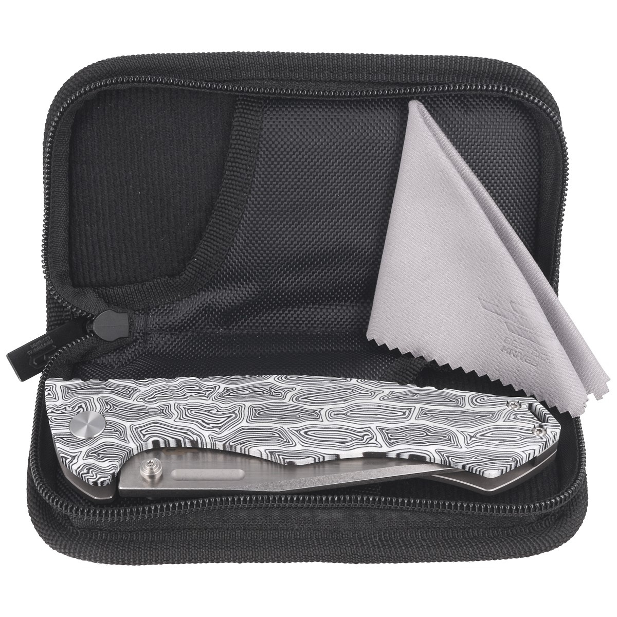 Futerał – nóż zapakowano w zapinany zamkiem nylonowy miękki pouch z logo marki służący do bezpiecznego przenoszenia i przechowywania foldera.