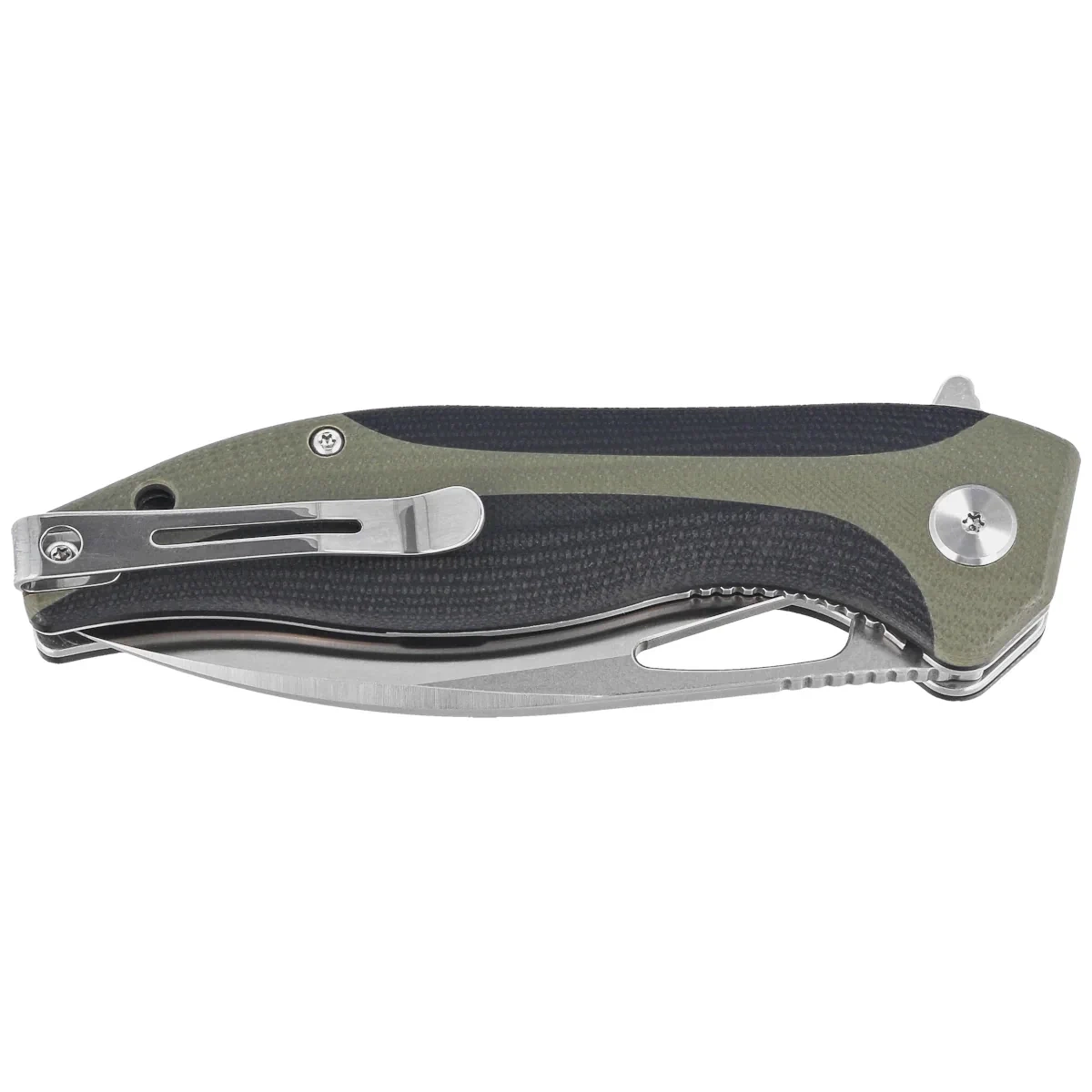Rękojeść – okładziny z G10, praktycznie niezniszczalnego tworzywa niewrażliwego na warunki atmosferyczne, odpornego na chemikalia i uszkodzenia mechaniczne Fazowane krawędzie okładek eliminują ostre ranty a charakterystyczne teksturowanie powierzchni poprawia pewność uchwytu. Przykręcone do solidnego backspacera zapewniającego pożądaną sztywność całości. Prosta, solidna konstrukcja daje pewność wieloletniego użytkowania. Jednopozycyjny, prawostronny klips umożliwia przenoszenie noża w pozycji tip-up, czubkiem ostrza ku górze. Nad klipsem otwór do przewleczenia linki zabezpieczającej lub ozdobnej.