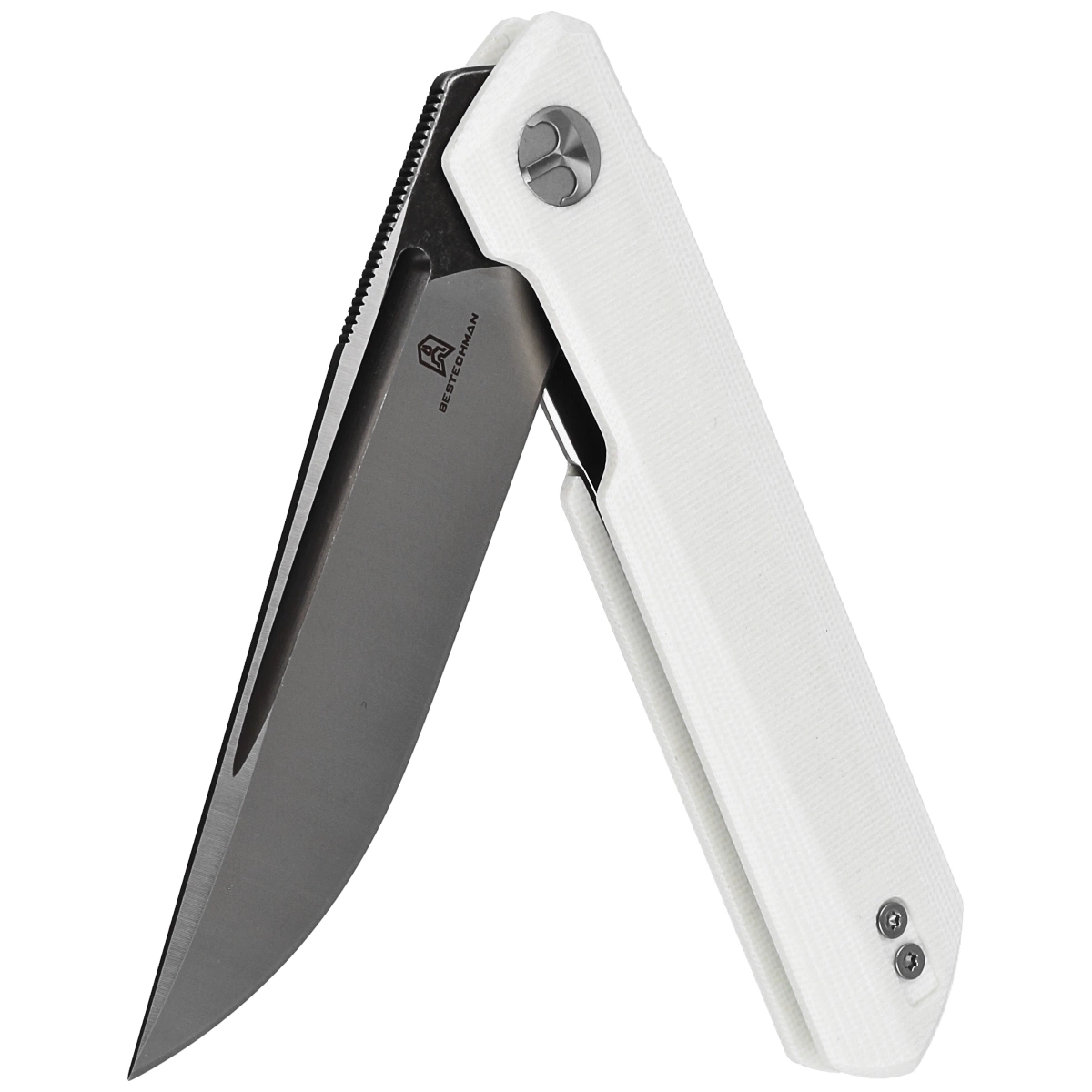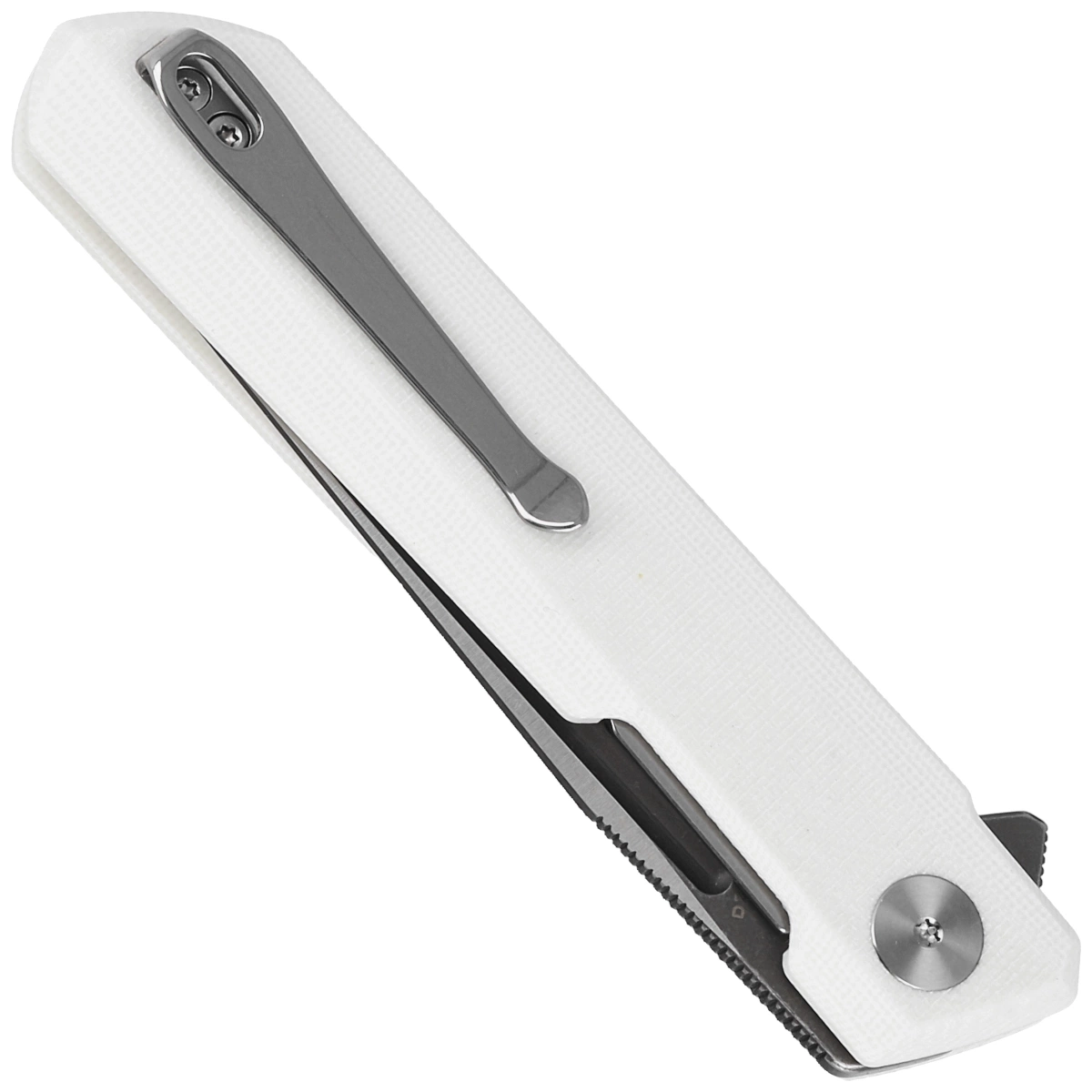 Dundee White G10, Grey Titanized / Satin kompaktowy nóż składany E.D.C. Efekt współpracy polskiego knifemakera, Ostapa Hela z firmą Bestechman. Wykonany z dobrych materiałów przy zachowaniu niezwykle atrakcyjnej ceny folder z klingą ze sprawdzonej stali D2. Bestseller!