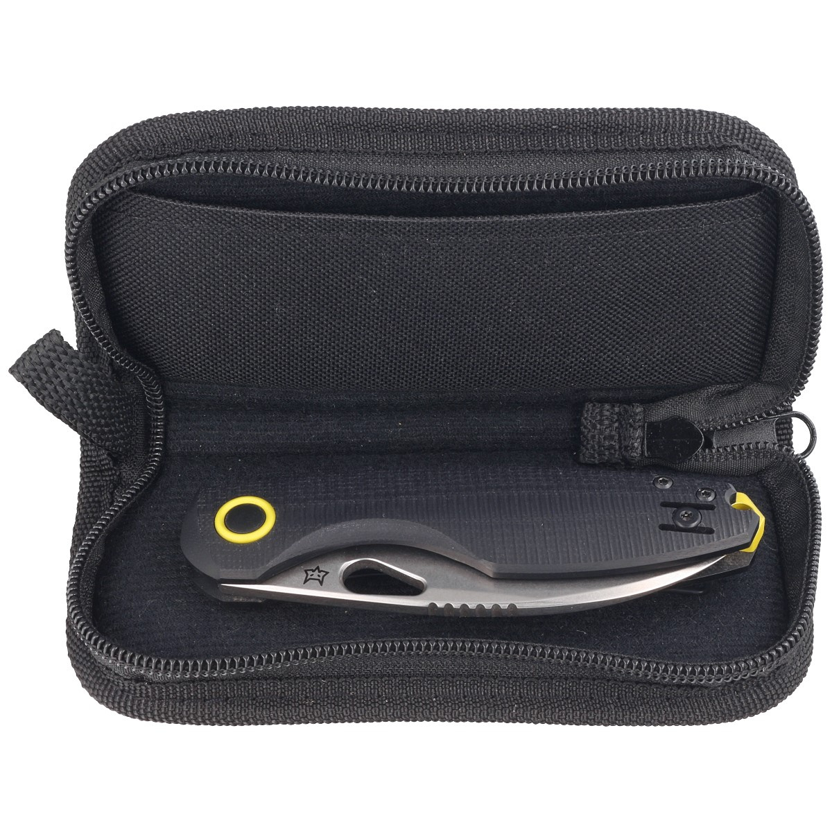 Rękojeść – okładziny z G10 (włókno szklane prasowane pod ciśnieniem z żywicą syntetyczną) niewrażliwe na warunki atmosferyczne, odporne na uszkodzenia mechaniczne. Fazowane krawędzie okładek eliminują ostre krawędzie dla wygody chwytu. Oksydowany na kolor żółty backspacer zapewnia sztywność i solidność całej konstrukcji. W tym samym kolorze jest ozdobna nakładka dookoła pivota. Dwupozycyjny (prawa/lewa) lekki klips z drutu (wire clip) umożliwia przenoszenie noża w pozycji tip-up, czubkiem ostrza ku górze. Nad klipsem otwór do przewleczenia linki zabezpieczającej lub ozdobnej.