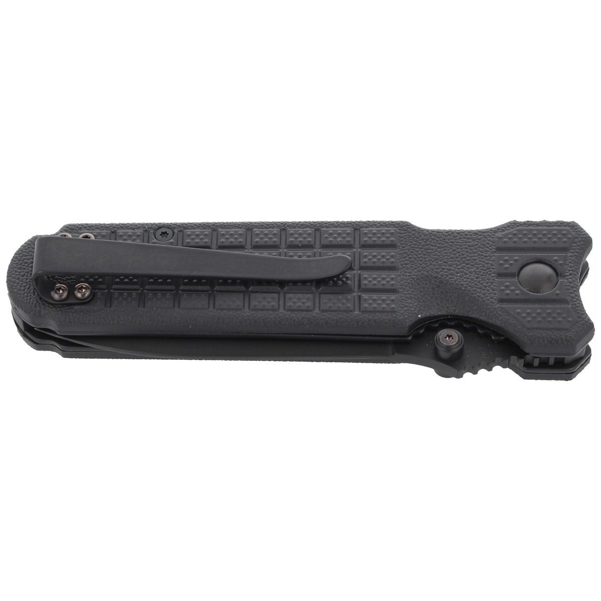 Rękojeść – w kolorze czarnym. Pokryta antypoślizgowymi, teksturowanymi okładzinami z tworzywa sztucznego FRN (Fiberglass Reinforced Nylon), nylonu wzmocnionego włóknem szklanym. Otwarta budowa open-backed upraszcza czyszczenie. Wycięcia w okładzinach umożliwiają intuicyjny dostęp do Thumb Stud oraz do mechanizmów zwalniających blokadę głowni. Solidny lewo / prawostronny metalowy klips do przenoszenia noża w pozycji tip-up (czubkiem do góry).