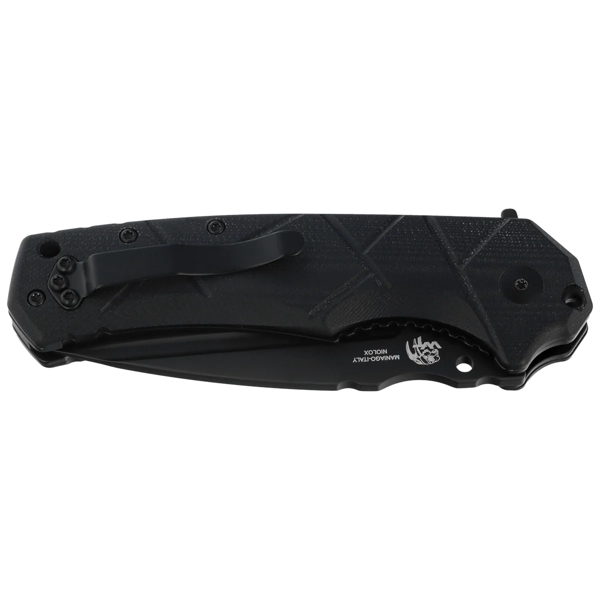 Głownia – o profilu drop point zapewnia wysoką wszechstronność użytkową — od precyzyjnego cięcia po prace wymagające dużej kontroli nad głębokością cięcia. Zastosowana stal Niolox łączy wysoką odporność na ścieranie, długotrwałą stabilność krawędzi tnącej oraz odporność na korozję, zachowując jednocześnie relatywną łatwość ostrzenia w warunkach terenowych. Twardość na poziomie 59–61 HRC zapewnia wysoką żywotność ostrza w codziennym użytkowaniu. Powierzchnię głowni pokryto czarną powłoką ochronną PVD. Otwarcie noża odbywa się za pomocą płynnie pracującego flippera na łożyskach, co pozwala na błyskawiczne i bezpieczne rozłożenie ostrza jedną ręką. Na grzbiecie zastosowano karbowane oparcie pod kciuk (jimping), poprawiające stabilność chwytu podczas precyzyjnych prac. Całość blokowana jest solidnym mechanizmem liner lock, zapewniającym pewne unieruchomienie ostrza w pozycji roboczej.