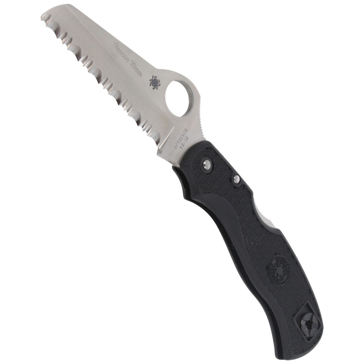 Głownia – o profilu Sheeepfoot, grubości 3 mm, z japońskiej stali nierdzewnej VG-10 (wysoka odporność na ścieranie oraz uszkodzenia mechaniczne) hartowanej w przedziale 59-61 HRC. Klingę zakończono tępym owalnym czubkiem, który chroni przed urazami osobę ratowaną. Powiększone 14mm okrągłe wycięcie SpyderHole (patent Spyderco) zwiększyło garb podparcia pod kciuk (rampę), który ustawia kciuk bezpośrednio nad otworem umożliwiając szybkie otwarcie noża również w rękawicy. Karbowana rampa pod kciuk na grzbiecie głowni oraz Finger Choil profilowane karbowane podcięcie pod palec wskazujący między rękojeścią a krawędzią tnącą ułatwiają pracę nożem. Solidny Back-Lock z dodatkowym zabezpieczeniem przed przypadkowym zwolnieniem blokady klingi (wycięcie w blokadzie) projektu Davida Boye’a.