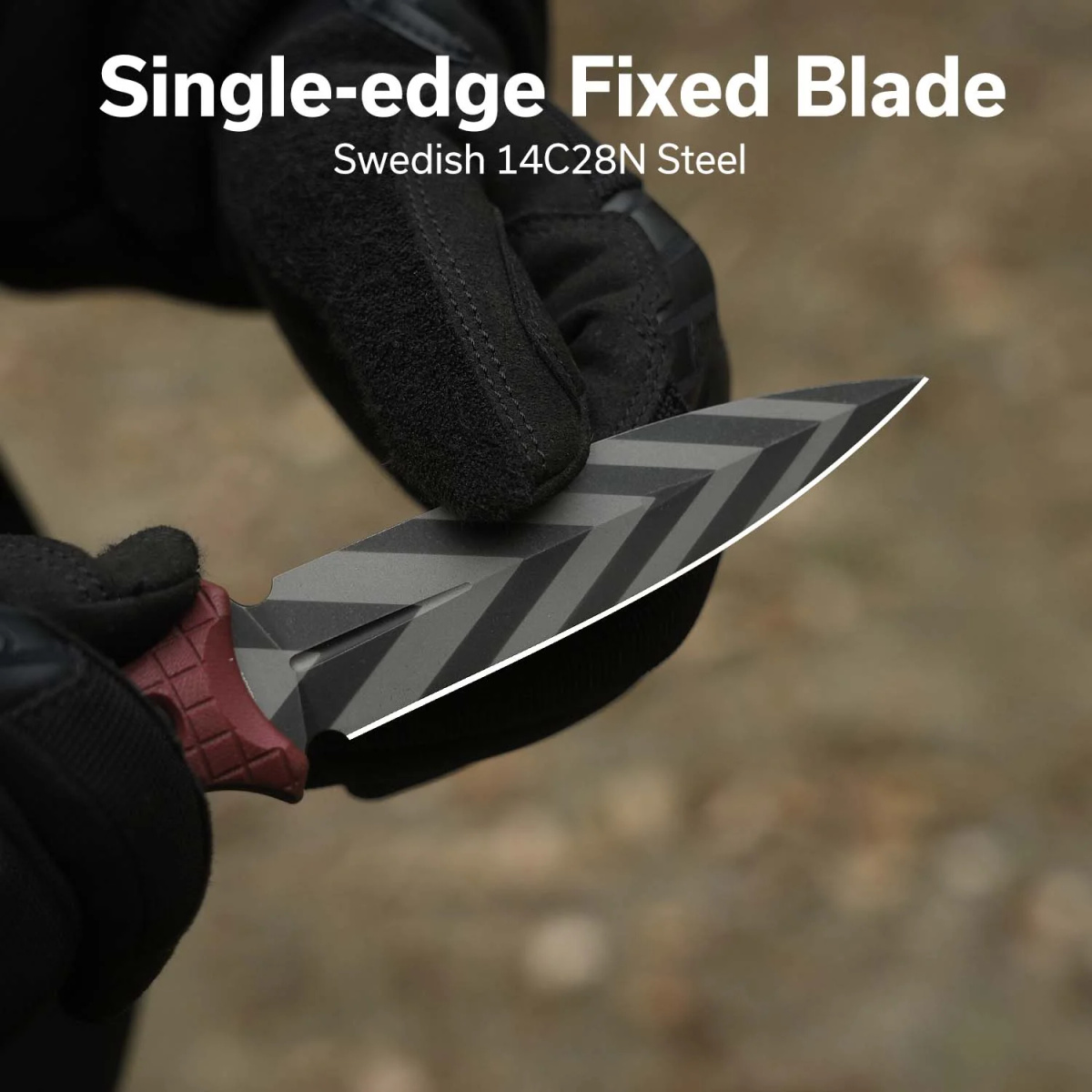 Perfrico Burgundy G10, Black/Gray Striped to nowoczesny sztylet o budowie Full Tang, ze stylistyką inspirowaną nożami militarnymi. Smukła głownia, jednostronnie ostrzona, wykonana ze stali nierdzewnej Sandvik 14C28N. Materiał ten gwarantuje wysoką odporność na korozję oraz długotrwałe zachowanie ostrości roboczej krawędzi. Rękojeść jest pokryta głębokim, agresywnym moletowaniem, co zapewnia pewny, antypoślizgowy chwyt także w rękawicach lub wilgotnym otoczeniu. Kompozyt G10, użyty do produkcji rękojeści, charakteryzuje się odpornością na pękanie, temperaturę oraz uszkodzenia mechaniczne. Sztylet jest przenoszony w pochwie wykonanej z kydexu, który zapewnia pewne trzymanie narzędzia. Uniwersalne mocowanie typu Tek-Lok pozwala na wygodne dopasowanie noża do oporządzenia lub pasa, umożliwiając wygodne noszenie w pozycji pionowej lub poziomej. Produkt został stworzony z myślą o praktycznym użytkowaniu oraz niezawodności w każdej sytuacji.