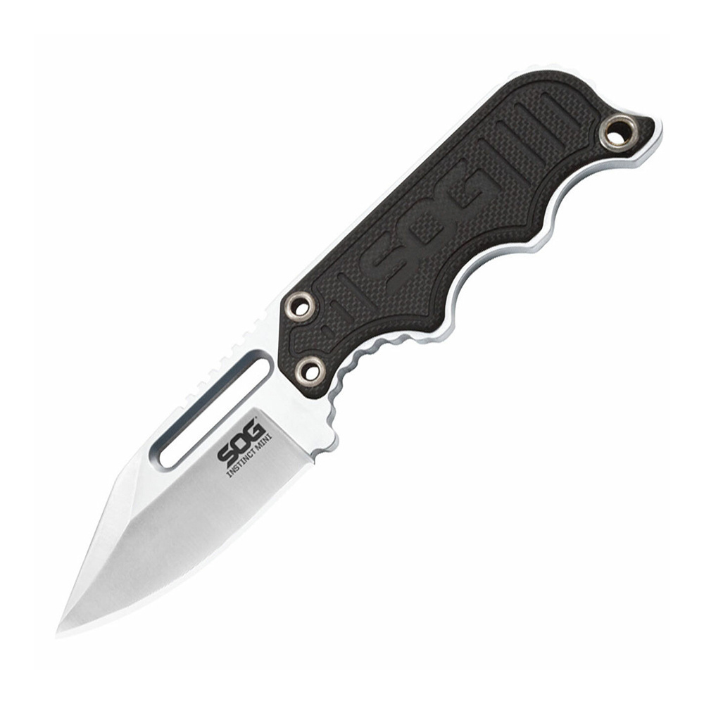 Kompaktowy nóż o konstrukcji Full Tang, z wyprofilowanym pod palce chwytem i nylonową pochwą z łańcuchem kulkowym.