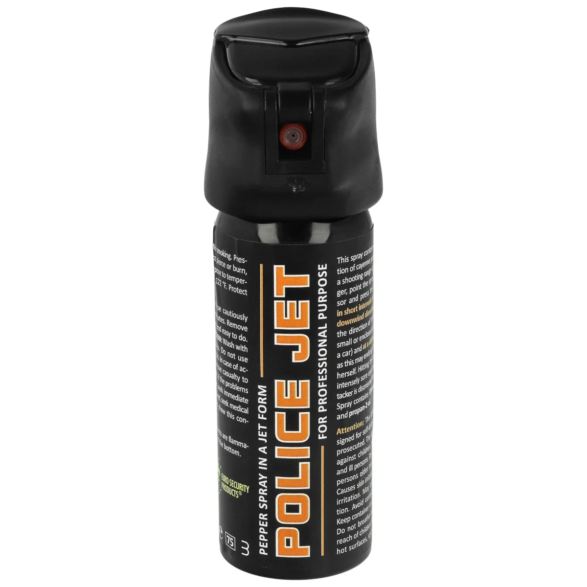 Police Jet to gaz pieprzowy o podwyższonej zawartości substancji drażniącej. Stężenie substancji aktywnej 15% OC (Oleoresin Capsicum) w tym 4% MC (Major Capsaicinoids). Zawiera środek obezwładniający w formie strumienia. Umożliwia skuteczną obronę przed napastnikiem/grupą napastników, również pod wpływem alkoholu lub środków psychoaktywnych oraz przed agresywnymi zwierzętami. Pojemność 50 ml.