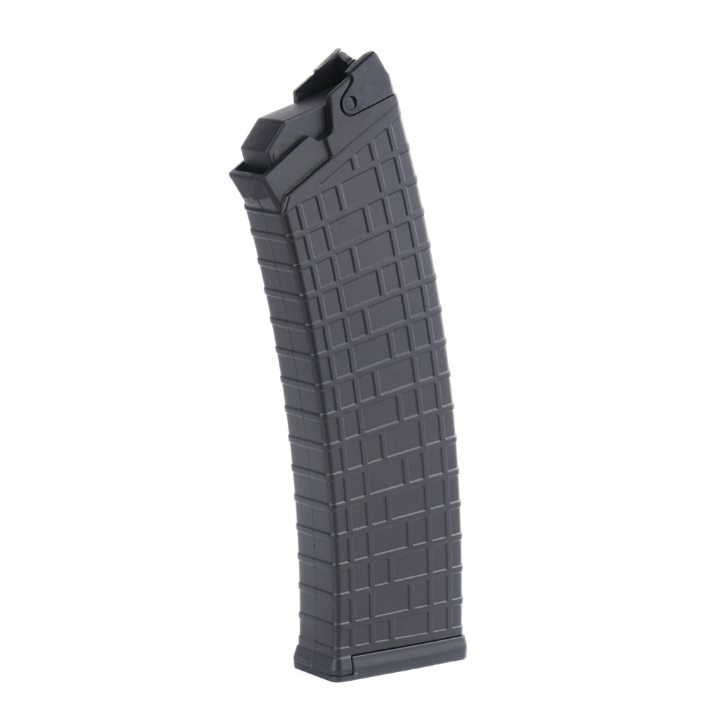 Wymiary magazynka są ściśle dopasowane do gniazda magazynka, co poprawia niezawodność i komfort obsługi broni. Sztywna sprężyna prowadząca czarny podajnik została rozłożona równomiernie po jego powierzchni co minimalizuje przechyły. Wytłoczenia na całej powierzchni magazynka zwiększają jego powierzchnie chwytu oraz wytrzymałość na uderzenie lub upadki.