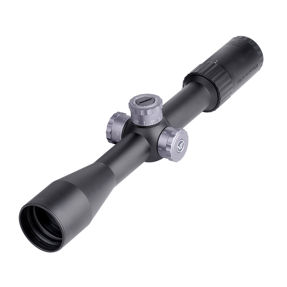 Wysokiej jakości luneta celownicza o zmiennym powiększeniu 4-16×44 wykonana z wytrzymałego aluminium lotniczego. Luneta z siatką celowniczą siatkę celowniczą VPA-MF na pierwszym planie (FFP). Wyposażona w wieżyczki regulacyjne z blokadą ustawień.
