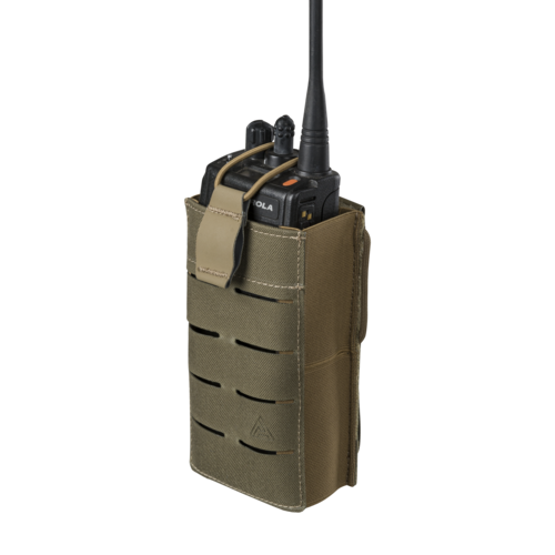 Ta kieszeń na radio zapewnia bezpieczne przenoszeni i jednoczesny dostęp do najpopularniejszych modeli radiostacji na rynku. Elastyczne boki oraz regulowana za pośrednictwem rzepów wysokość umożliwiają przenoszenie zarówno niewielkich radiostacji, jak i większych w stylu AN/PRC-148/152, jak i przenoszenie radiostacji z odpiętą baterią. Laserowo cięty system modułowy zgodny z MOLLE/PALS umieszczony na przodzie kieszeni umożliwia montaż dodatkowego wyposażenia. Kieszeń jest nie tylko kompatybilna z dowolną platformą w systemie MOLLE/PALS, ale również, dzięki specjalnie zaprojektowanym szlufkom z paracordu, możliwe jest zamontowanie jej na dowolnym pasie o szerokości 45mm.