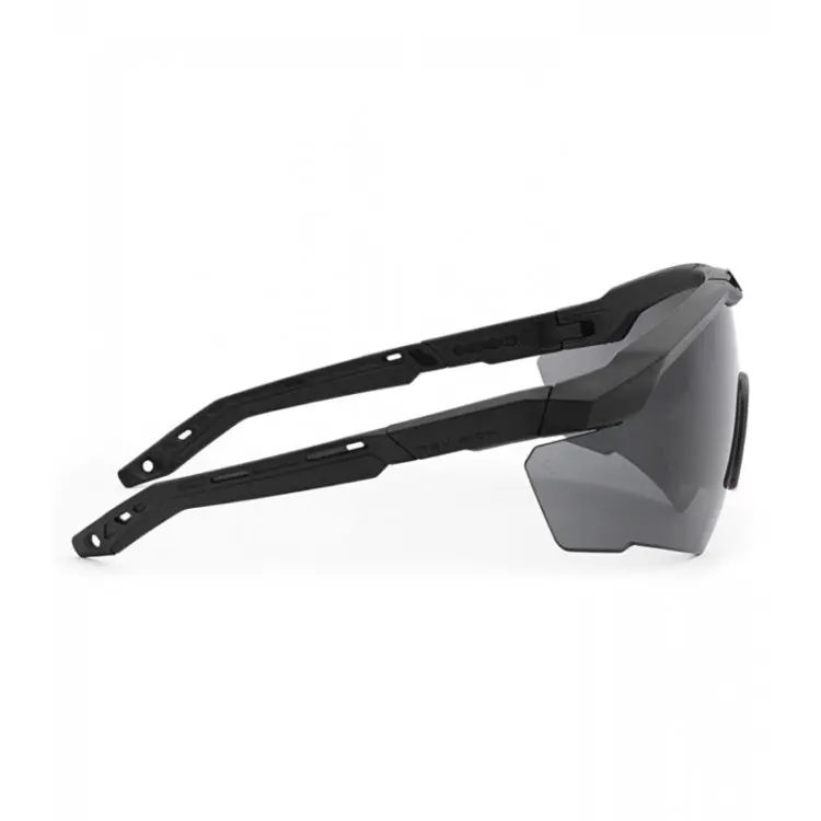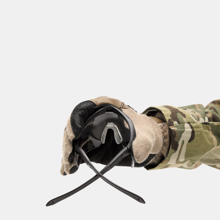 Ramka Sawfly R3 Max-Wrap wyposażona jest w metalowe zauszniki z regulacją długości, zapewniające kompatybilność z systemami łączności oraz stabilność podczas intensywnych działań. Wizjer wykonany z poliwęglanu klasy optycznej z powłoką OcuMax Plus jest odporny na zarysowania, zaparowanie i działanie substancji chemicznych, gwarantując niezakłóconą widoczność w każdych warunkach terenowych. Konstrukcja umożliwia błyskawiczną wymianę wizjera bez narzędzi oraz montaż wkładki korekcyjnej RX Carrier (sprzedawana osobno).